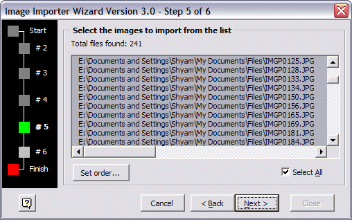 selected, you can set the order in which the images are to be imported by