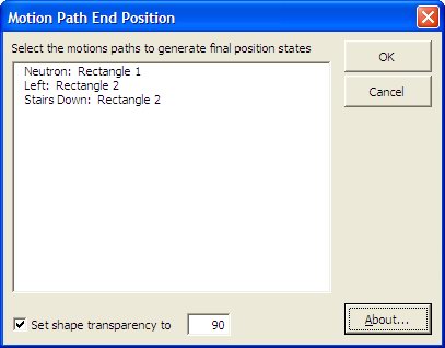This free add-in will create duplicate shapes at the position where each of the selected motion path animation ends. Using this tool you can quickly determine the end position of the animation at design time.